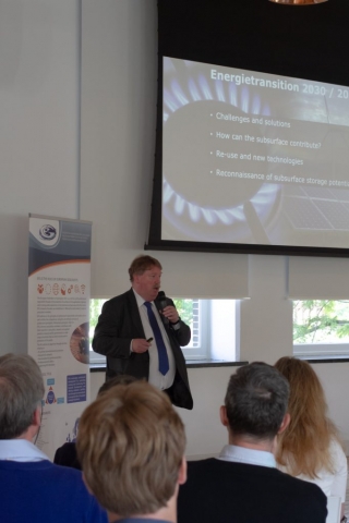 Ruud Cino, who is responsible for oil, gas and other mining sectors at the Dutch Ministry of Economic Affairs & Climate Change, focused in his speech on the role of the subsurface in the energy transition and the social challenges arising from this. He outlined three key measures to reduce greenhouse gas emissions and emphasize the role of geosciences: (1) energy savings and efficiency which can be achieved by managing heat and cold demand through subsurface storage; (2) CO2 capture and storage which allow, in the short term, to use offshore gas fields with an ample storage capacity; and (3) CO2-free energy sources and technologies such as wind, solar, biomass or geothermal which require the exploration and exploitation of mineral raw materials for their deployment. Mr. Cino also underlined the critical importance of raw materials supply for the large-scale development of energy storage technologies, which will increase the overall flexibility in the supply of energy services. He finally highlighted the need of policymakers to receive support from geoscientists, to inform the public about both the opportunities and risks arising from the changing environment.